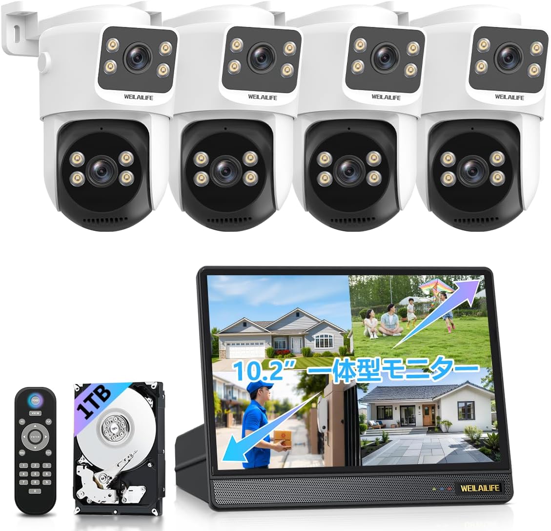 【4K800万画素・双方向通話・バレット&ドーム】WEILAILIFE 有線 poe 防犯カメラセットランキング 屋内 屋外 4台 poe給電 監視カメラ・録画機セット スマホ対応セキュリティカメラ モニター付き