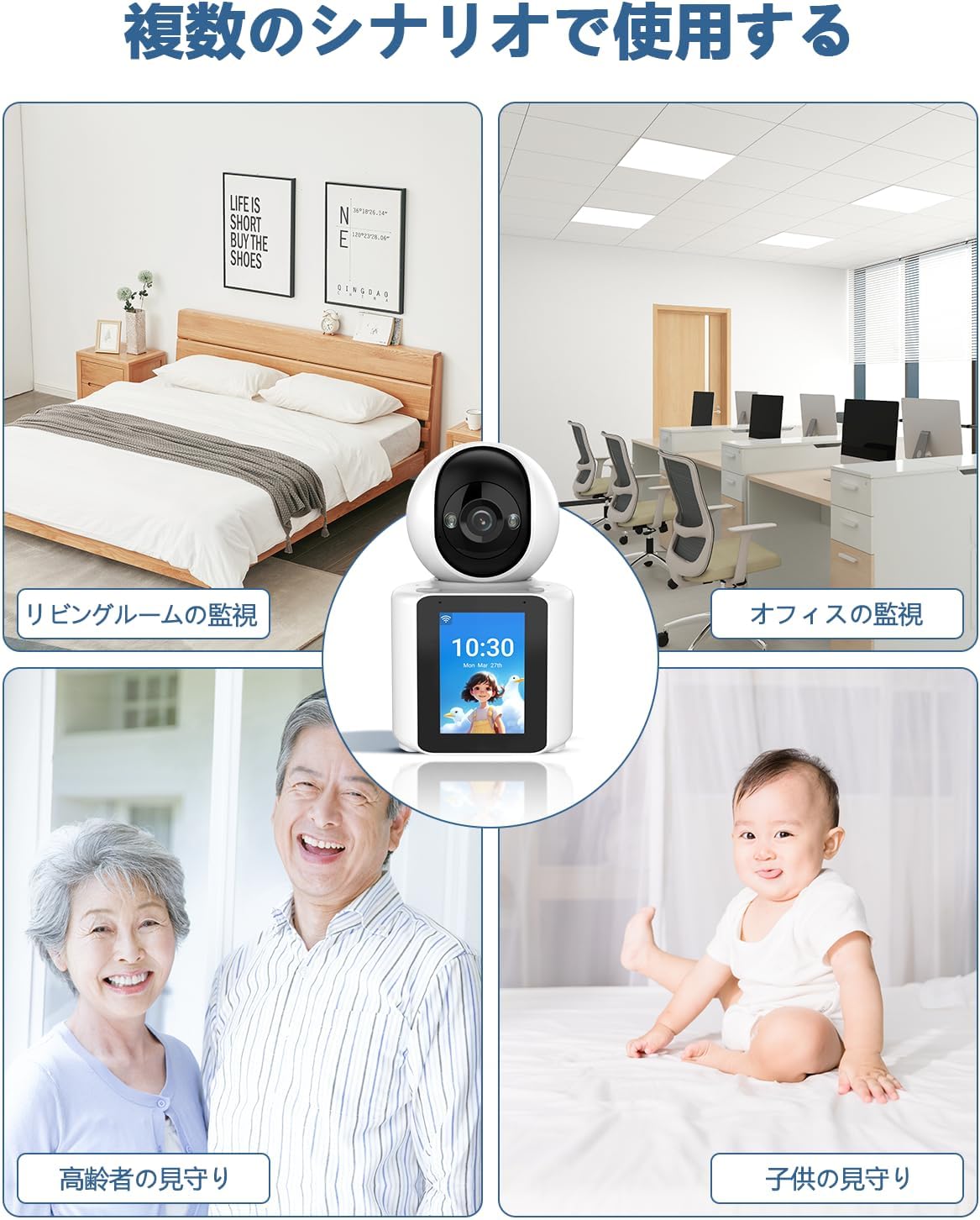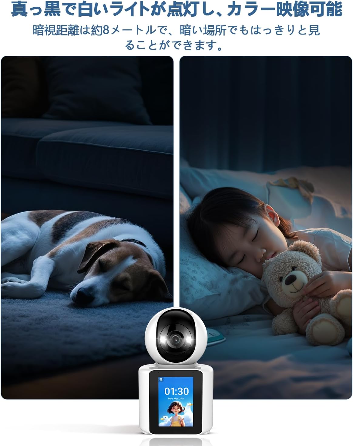 【ワンタッチコール機能・ビデオ通話】WEILAILIFE 防犯カメラ ネットワークカメラ Wi-Fiカメラ 防犯カメラ ペットカメラ ドームカメラ 見守りカメラ 屋内 工事不要 ワイヤレス