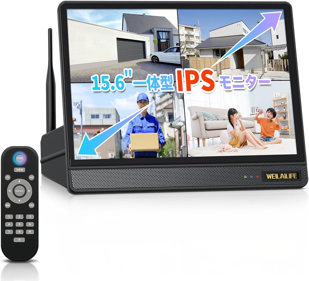 WEILAILIFE 15.6インチモニター 一体型録画機 NVR モニター付き カメラ追加 ワイヤレス防犯カメラ対応 ペアリング (ハードディスク無し)