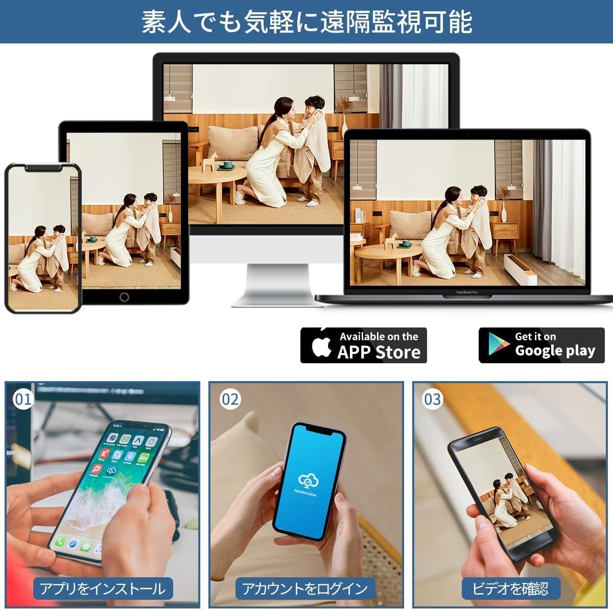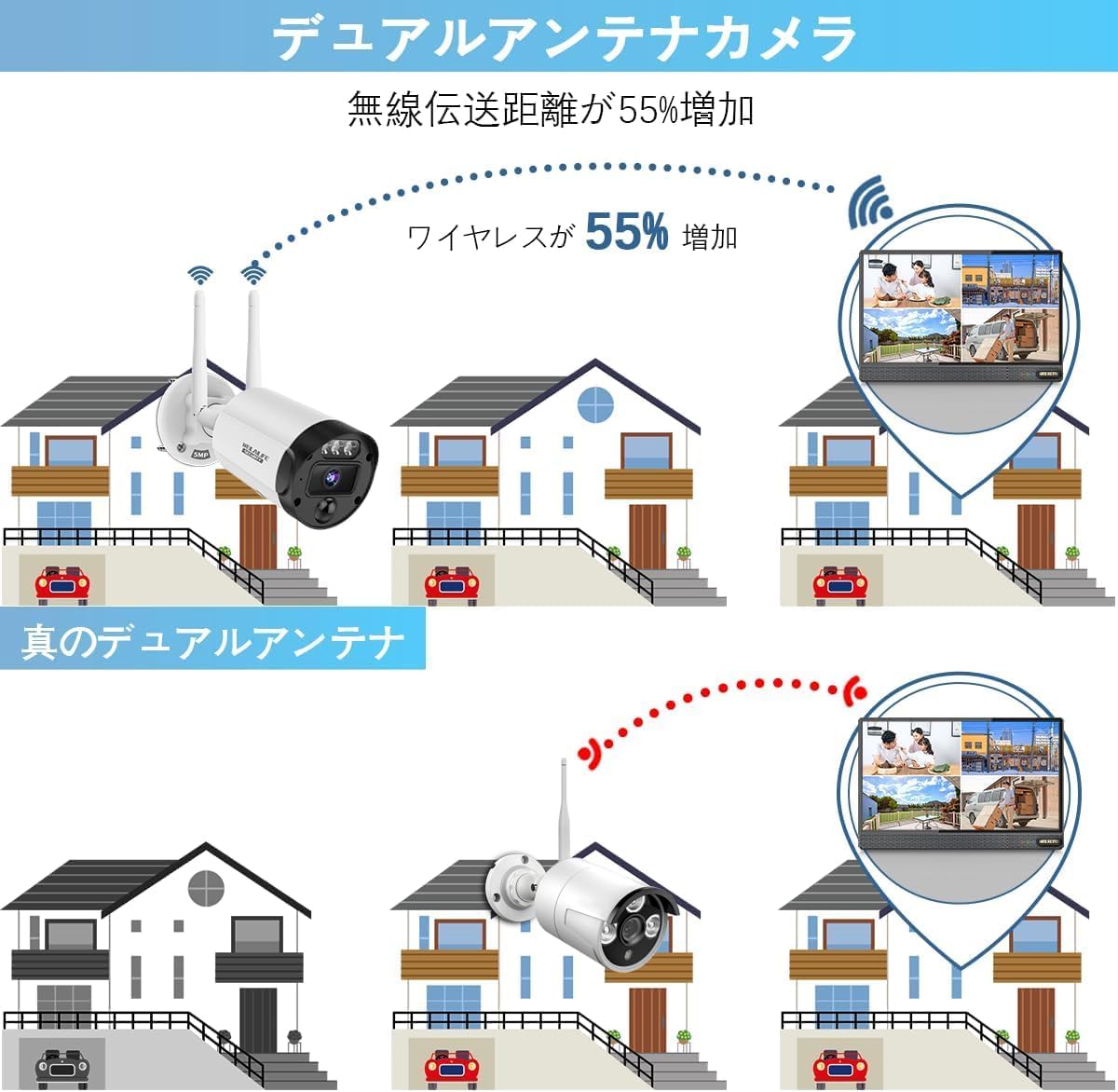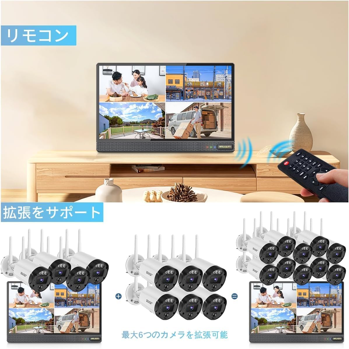 - {カメラ10台まで対応・多種録画機能搭載} 本レコーダーは最大防犯カメラ10台まで増設できますので、ご必要によってWIFIカメラを増設できます。ワイヤレス録画機なので、接続方法はデフォルト無線ですが、カメラと有線接続可能です(特にカメラを遠く設置し、電波が弱い場合、有線接続へ変更し電波を改善できます)。常時録画、スケジュール録画、動体検知録画3つの録画モードがあります。ご必要によって気楽に設定できます。動体を検出し、本体ブザー、アプリ知らせ、E-mail通知、カメラ警報が受信可能です。