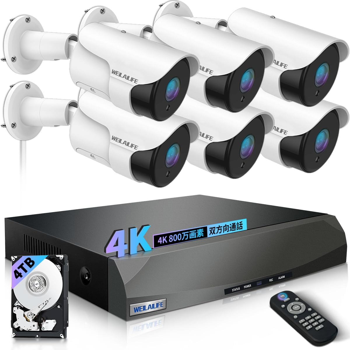 【4K800万画素・双方向通話・130°超広角】 WEILAILIFE 有線 防犯カメラセットランキング poe給電 監視カメラ・録画機セット ネットワークカメラ lan接続 6台