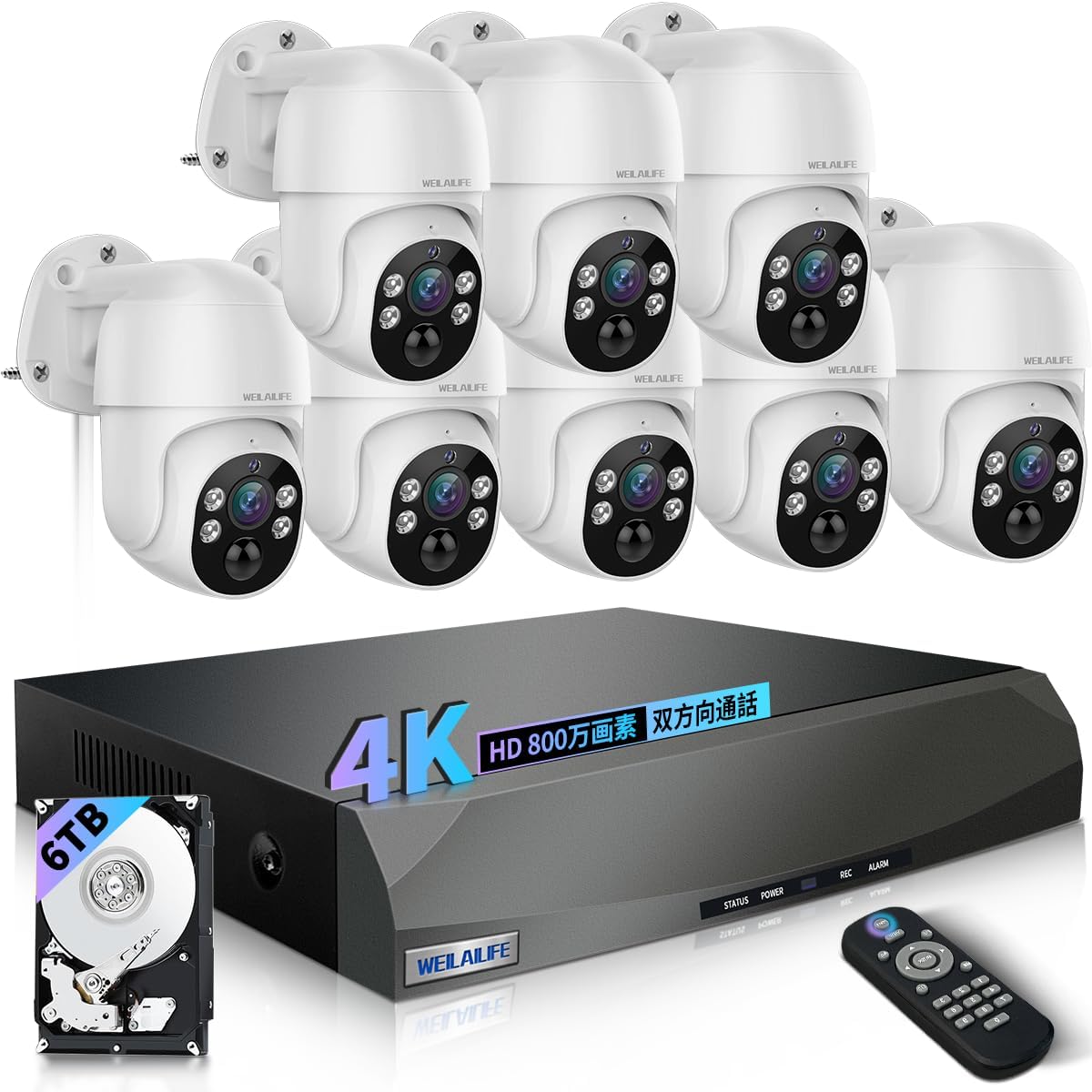 【4K800万画素・双方向通話・自動追跡・PTZ制御】 poe 防犯カメラセットランキング 屋外 有線 防犯カメラ 屋内 poe給電 監視カメラ・録画機セット