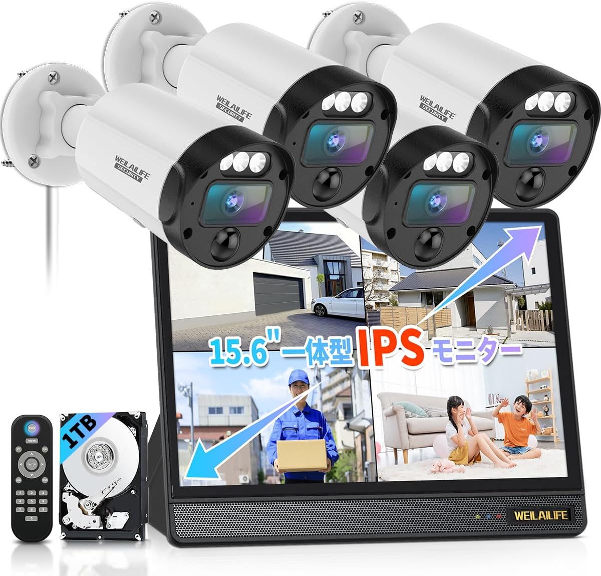 【800万画素・双方向通話・130°超広角】 WEILAILIFE 有線 モニター付き poe 防犯カメラセットランキング 4台 防犯カメラ 屋内 屋外防犯カメラセット防犯カメラ poe給電